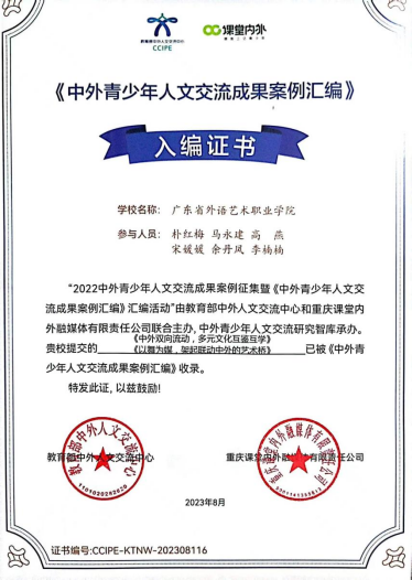 近日传来好消息,艺术教育学院报送的《以舞为媒,架起联动中外的艺术桥》案例入选了由教育部中外人文交流中心主办的《2022中外青少年人文交流成果案例汇编》。