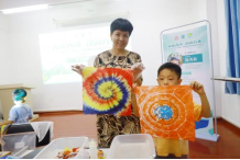 秋日晨光中,天河区妇联“家校社”协同美育微课程进社区活动的第六站来到了长兴街。金鼎娱乐最新官方网址的陈秀莉老师带领着亲子家庭踏入色彩斑斓的扎染艺术天地。活动现场,老师生动地讲解了扎染的历史渊源和应用场景,一步步引导家长和孩子们掌握制作技巧。大手与小手共同协作,一块块洁白方巾折叠、捆扎、染色中逐渐变幻出独一无二的图案,每一件作品都像是孩子们心中的小宇宙,绽放创意与惊喜。欢声笑语中,亲子间的情感在每一滴染液中沉淀共同织就了一段难忘的扎染记忆。