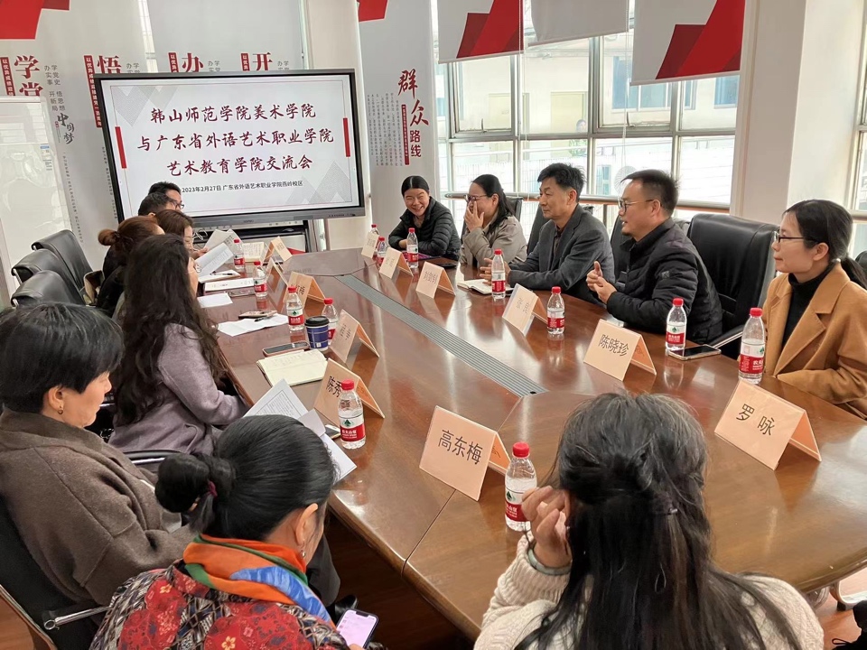 随后,韩山师范学院来宾一行与艺术教育学院的领导和美术教育专业的教师进行了会谈。学院院长朴红梅向来宾一行介绍了艺术教育学院,双方就联培项目的运行情况、毕业生就业前景、今后合作发展等方面进行了深入交流,并达成了多项共识。