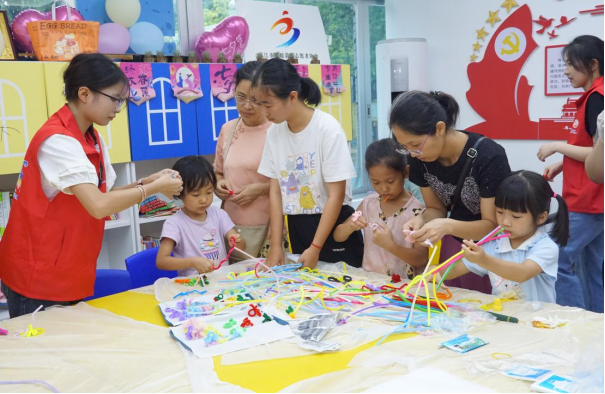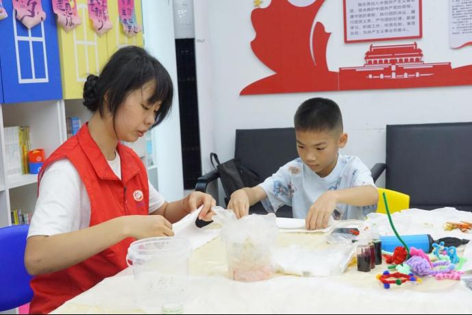 本次活动以情满七夕,爱在港城”为主题,依托霞山区“百千万工程”实施背景,将传统节日文化与现代美育实践相结合。支教队员充分发挥专业特长,设计了诵读课堂、非遗扎染、创意扭扭手工等多项互动体验环节,吸引众多亲子家庭积极参与,在寓教于乐中传递七夕文化内涵,提升市民审美素养,增强文化自信。