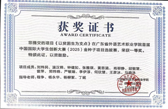 “以贫困生为支点·助力乡村振兴”项目凭借其出色的创意与扎实的实践方案,荣获一等奖。指导老师有:程争、杨永华、杨柳絮、丁妮;项目成员有:刘炜民、温汉锦、钟健如、张雅琪、黄思涵、肖柳静、邱敏慧、曾萍、郑炜晓、严敏瑞、李伊淳、何欣慧、王彦冰、马晓泳