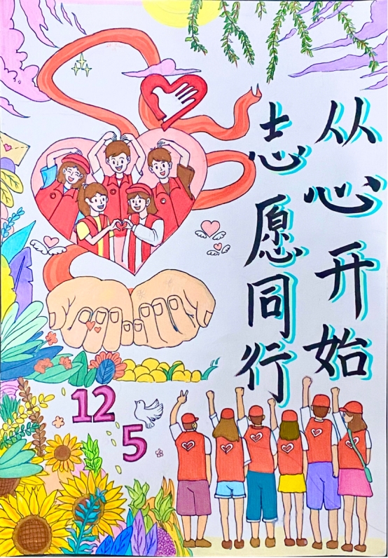为积极响应国家号召,进一步培育青年学生的社会责任感与奉献精神,艺术教育学院于上学期期末成功举办了志愿精神绘画比赛,充分展现艺教学子的青春风采与责任担当,引领学生在艺术创作中深化对志愿服务的理解与践行。