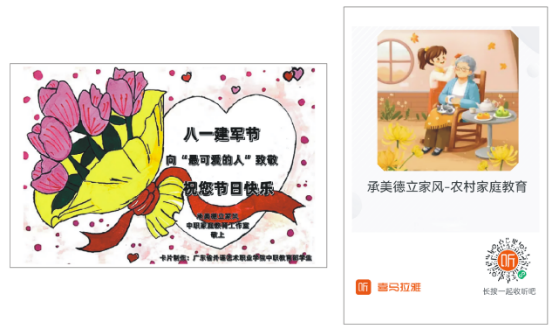 图3:21航空班学生作品搭载着承美德立家风中职家庭教育工作室的课程送祝福、进社区。