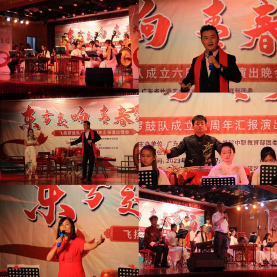 2023年5月22日晚,为进一步活跃学生校园文化生活,展示学生社团“飞扬锣鼓队”的社团风采,在社团指导教师蔡俊华的带领下,飞扬锣鼓队在龙洞校区大礼堂举办主题为“东方交响 青春激扬”——金鼎娱乐最新官方网址飞扬锣鼓队成立六周年汇报演出晚会。学校团委书记朱丹、财会金融学院院长钟志恒,中职教育部主任刘伟峰、副主任罗克宁、学生科长谭腾、团委书记刘婉娜,龙洞校区保卫科长陈光路以及对传统文化感兴趣的老师出席并观看了汇报演出晚会。参加演出观摩的中高职学生代表约400名。