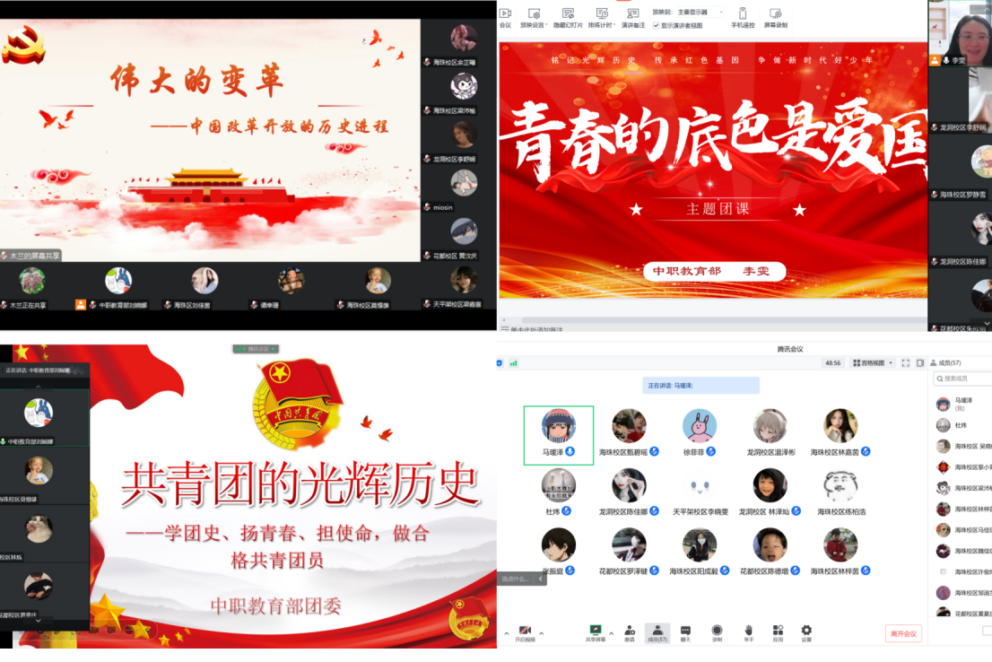 为了让青年学生更加清晰地认识到自己肩负的责任和使命,5月19日至23日,中职教育部采用线上授课的方式,面向中职各校区各班级优秀学生开展团课学习培训。本次团课由中职教育部党总支书记陈杰、副书记李雯、组织员马瑗泽、团委书记刘婉娜主讲。
