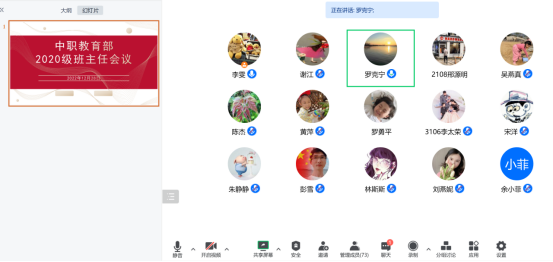 陈杰对会议进行总结,她首先对班主任表示关心,提醒班主任在疫情新形势下照顾好自己;她对所有班主任在疫情期间的工作进行了充分的肯定,对一直以来在学生工作中辛勤付出的班主任表示感谢;她强调,学生实习面临新的困难和问题,新形势对班主任队伍有了更高的要求,要求班主任以更坚强的姿态、更到位的工作、更强的人文关怀、进一步经受住考验,以身作则,以更好的状态关心、爱护学生,始终把学生健康和安全放在第一位。