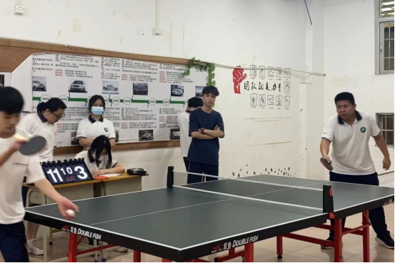 乒乓球比赛在实训楼A栋二楼乒乓球室有序进行,本次比赛采用单淘汰制,赛程精彩纷呈,直拍、横拍、扣球、旋转球、弧线球等都得到了一一体现,比赛中不时传出热烈的喝彩声,兴奋的“好球”声不断。比赛中,运动员们团结协作、融洽配合,认真专注、挥汗如雨,精彩场面迭出,各种花式技巧精彩频现。