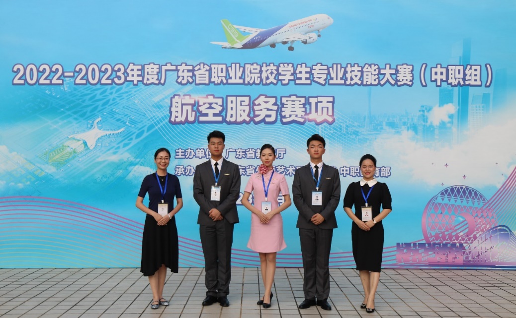 近日,由广东省教育厅主办的2022-2023年度广东省职业院校学生专业技能大赛(中职组)航空服务赛项在我校海珠校区举行,我校中职教育部航空服务专业任麒麟、练柏浩、黄海晴同学在张筱慧、王艺青老师的指导下,获得一等奖,并顺利进入国赛。